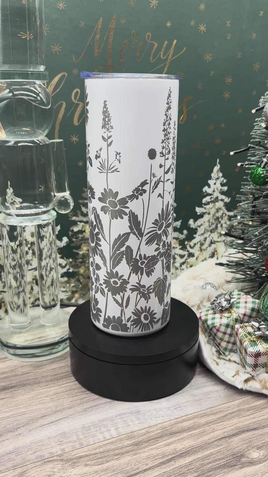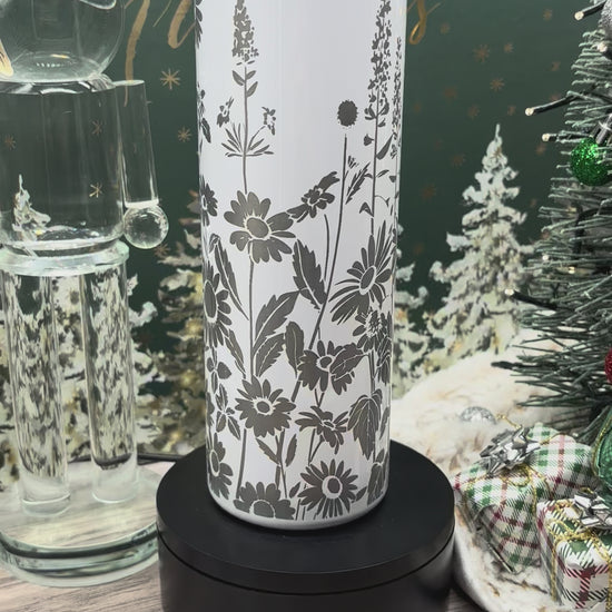 20oz Skinny Engraved Tumbler with Floral Engraved Scene