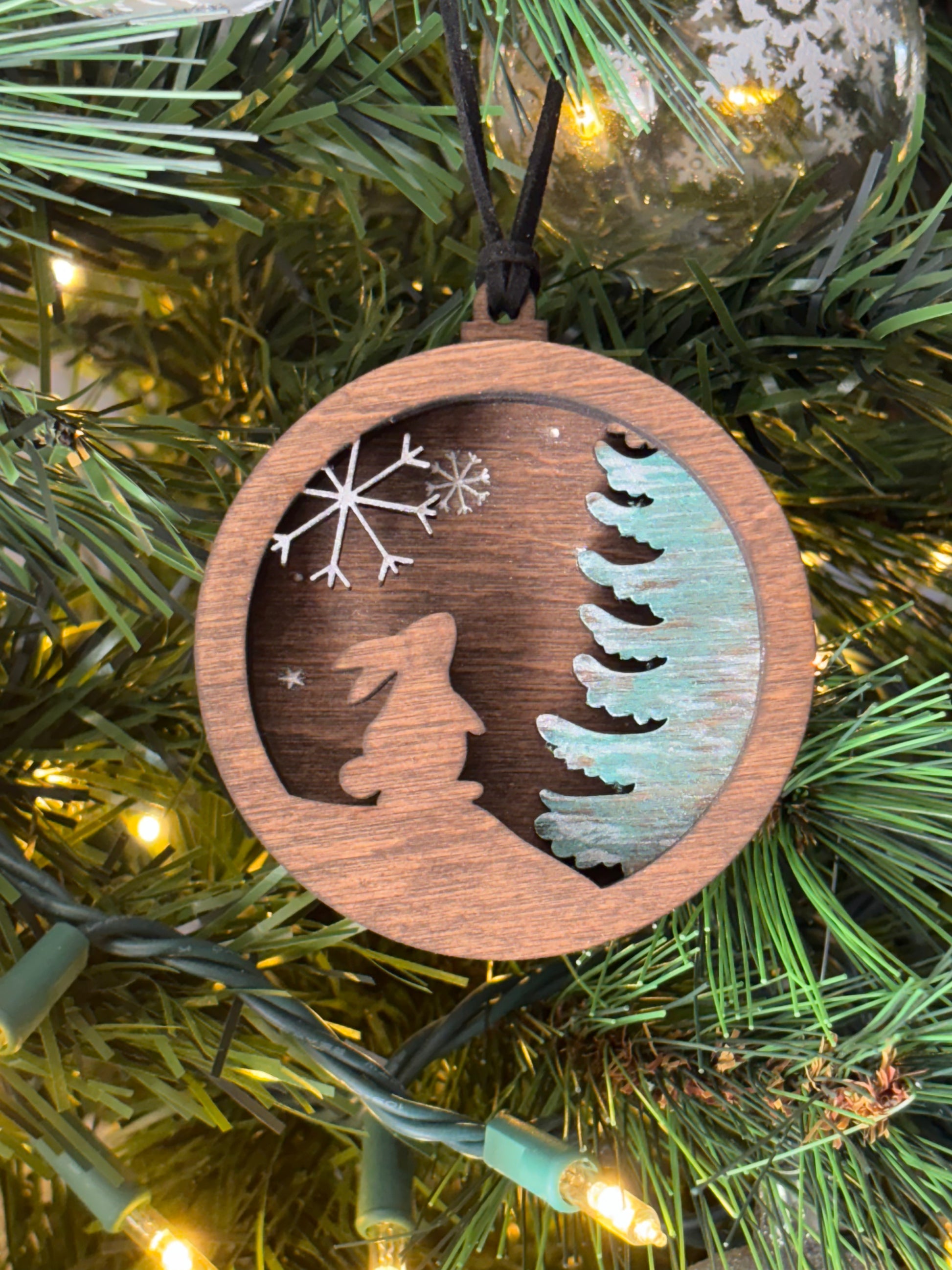 Celebrate the season with this exquisite 3D Christmas ornament, featuring a charming hand-painted snowflakes, and tree nestled among intricately a laser-engraved Bunny. Crafted with three distinct layers that create remarkable depth and dimension, each piece showcases meticulous artisanal detail. The combination of hand-painted artistry and precision laser engraving produces a sophisticated holiday accent that captures both warmth and winter elegance. Perfect as a thoughtful gift or a standout addition to your festive décor, this ornament brings handcrafted quality to your tree.