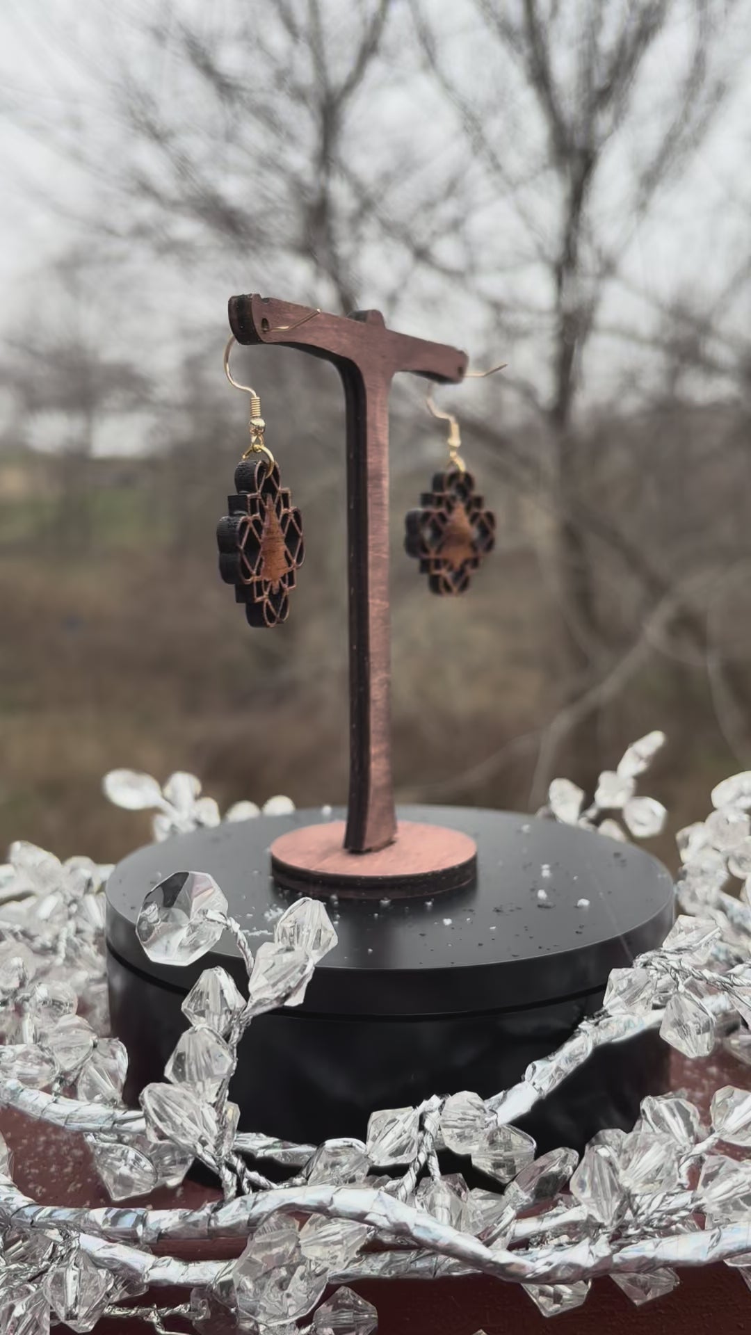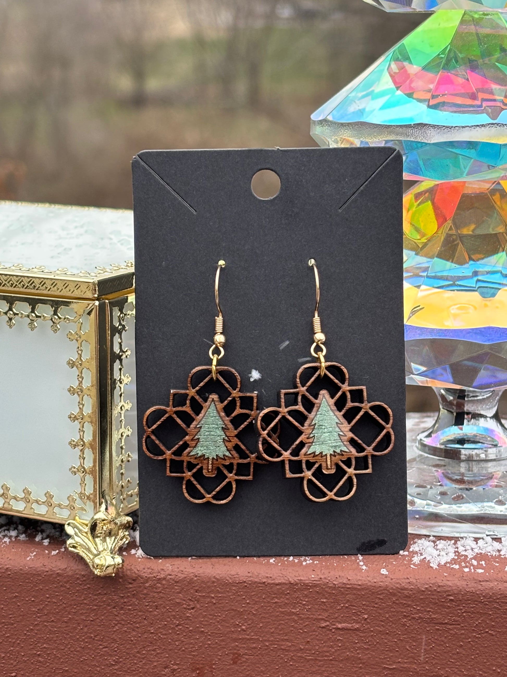 Handcrafted from solid black walnut, these lightweight earrings showcase an elegant Celtic knot design intertwined with a Christmas tree. Each pair is meticulously laser engraved and hand-painted to capture intricate details, making them truly one-of-a-kind. Perfect for the holiday season, these festive earrings combine timeless Celtic artistry with seasonal charm, offering a sophisticated accessory that celebrates both tradition and individuality.