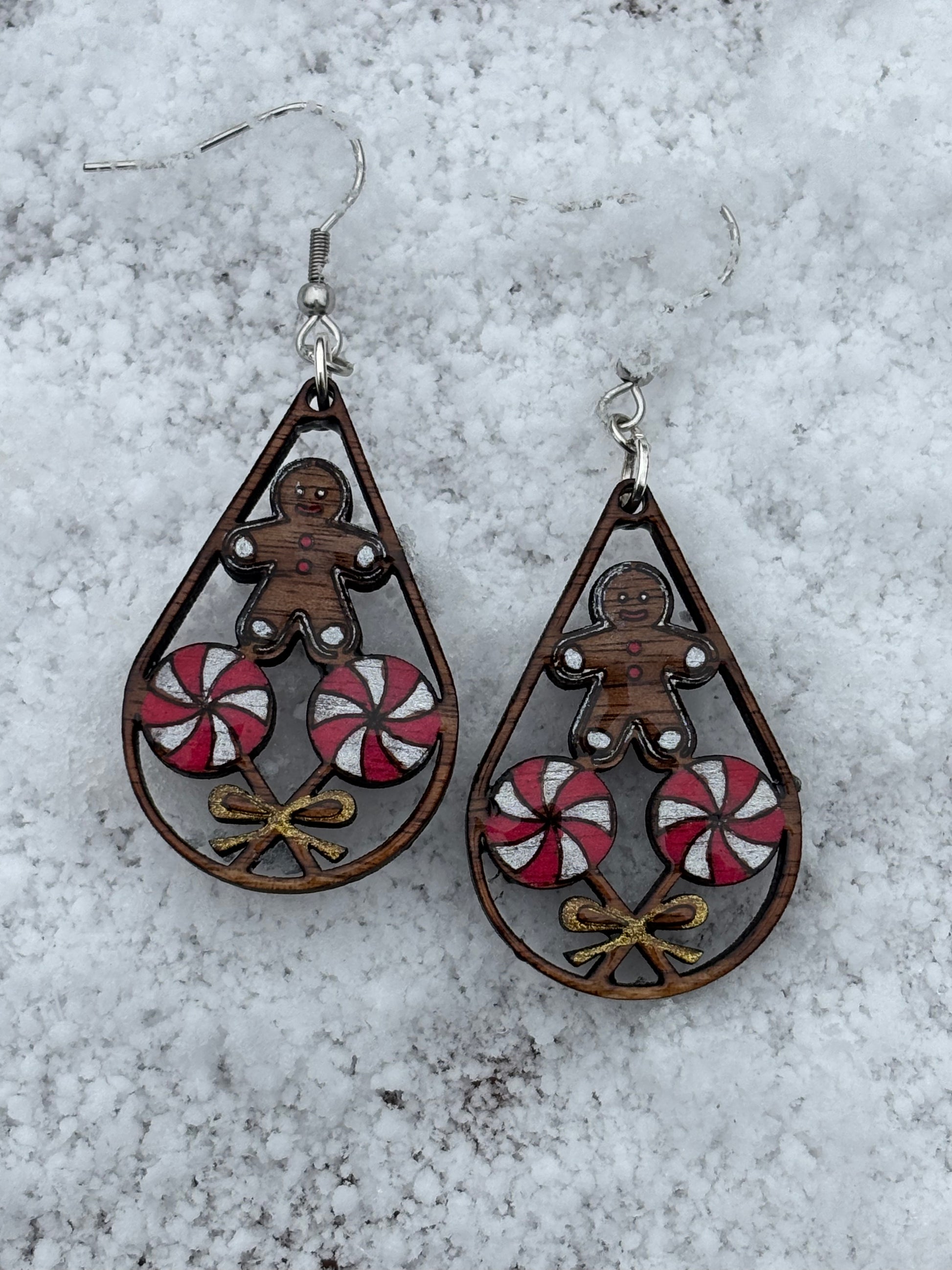 Classy Gingerbread Man & Lollipop Teardrop Earrings