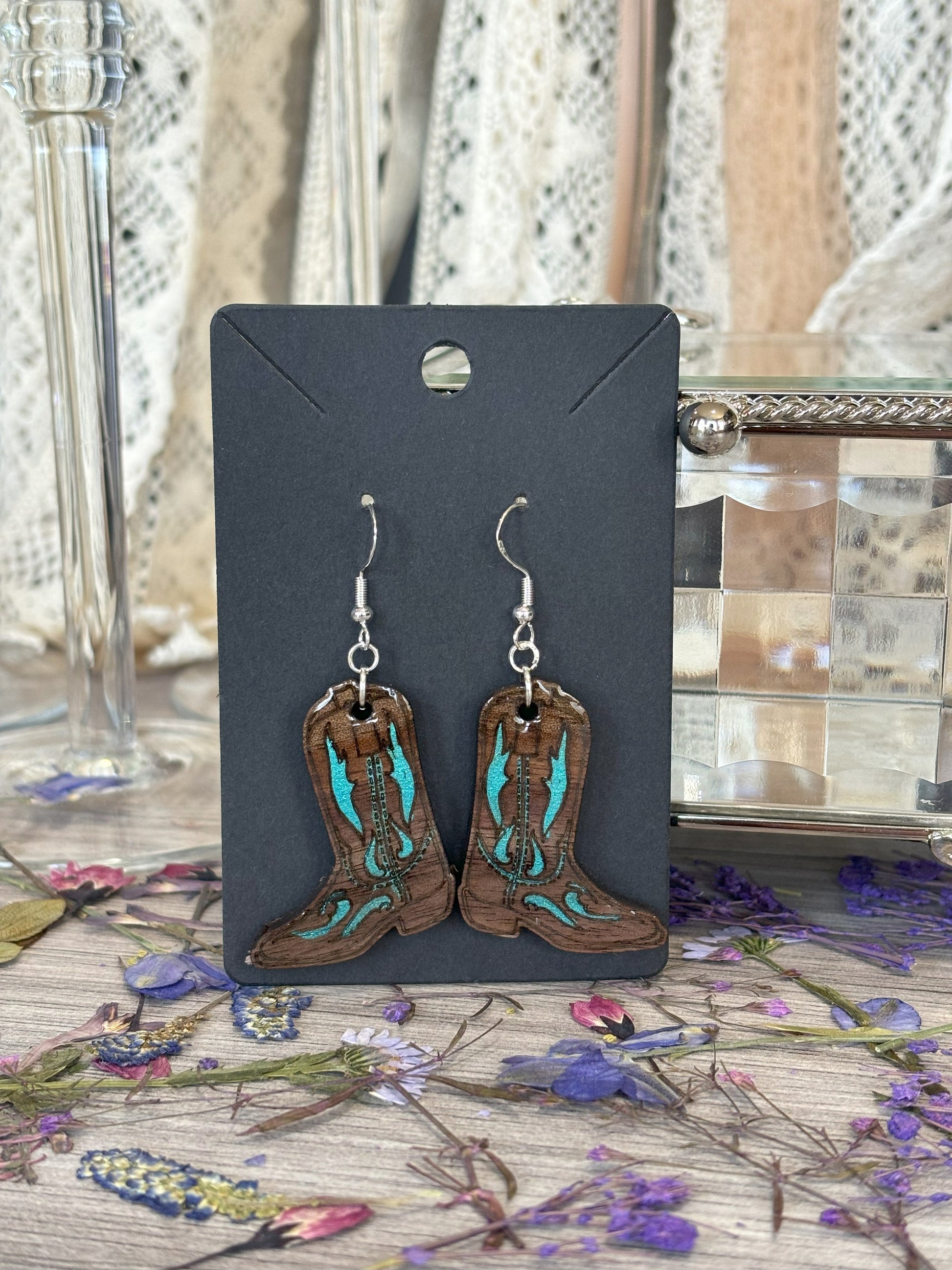 Crafted from solid black walnut wood harvested in the Ozarks, these earrings combine natural durability with refined elegance. Each pair is meticulously hand-painted and laser-engraved, allowing for precise, custom designs that make every piece uniquely yours. Their lightweight yet sturdy construction ensures comfortable wear while showcasing expert craftsmanship in fine wood jewelry. Ideal for those seeking a sophisticated accessory with a personal touch.