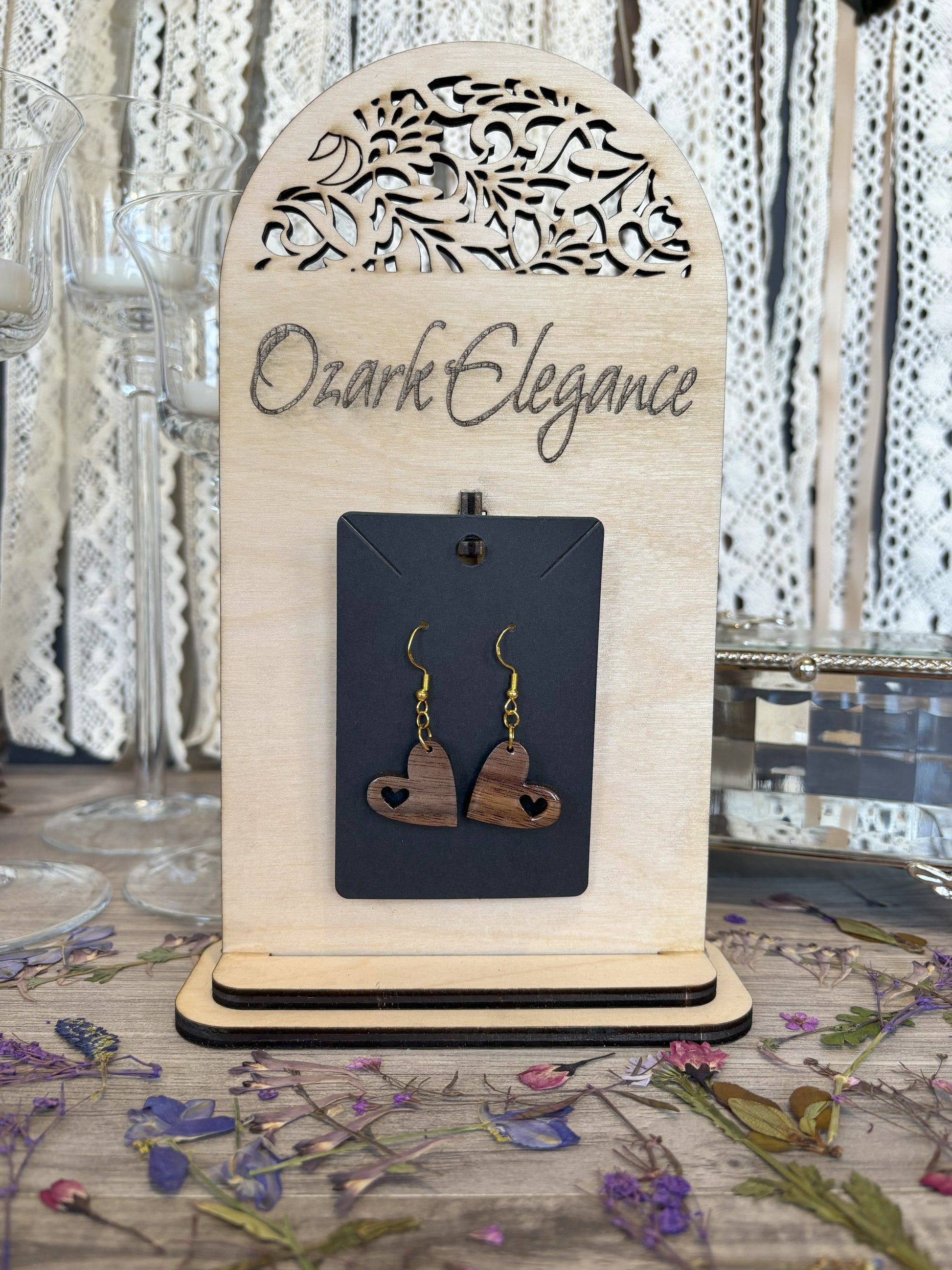 Crafted from solid black walnut wood harvested in the Ozarks, these earrings combine natural durability with refined elegance. Each pair is meticulously laser-engraved, allowing for precise, custom designs that make every piece uniquely yours. Their lightweight yet sturdy construction ensures comfortable wear while showcasing expert craftsmanship in fine wood jewelry. Ideal for those seeking a sophisticated accessory with a personal touch.